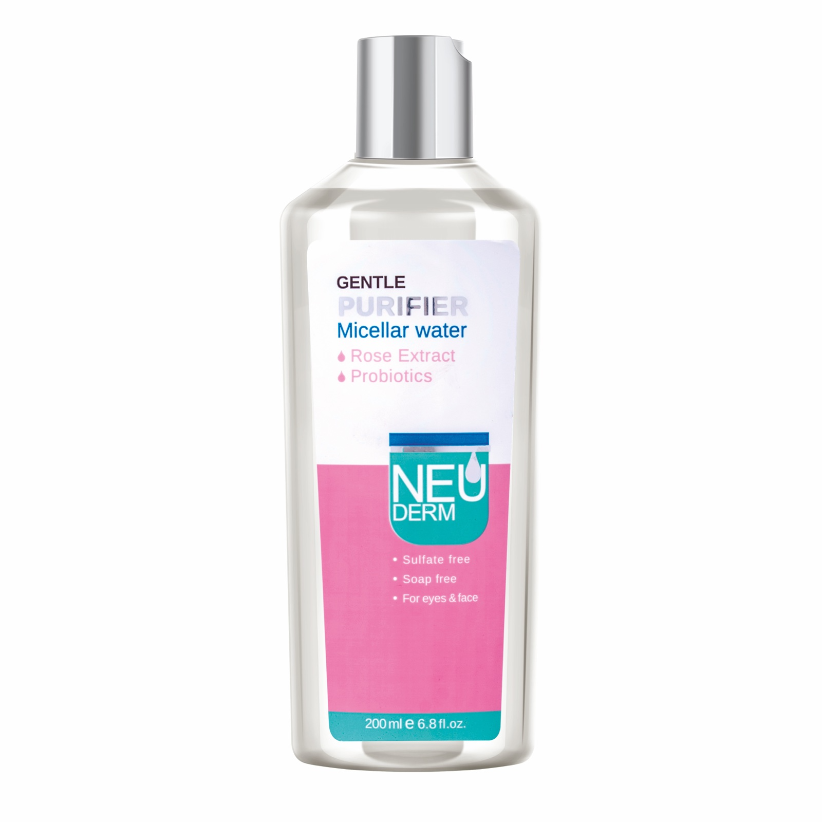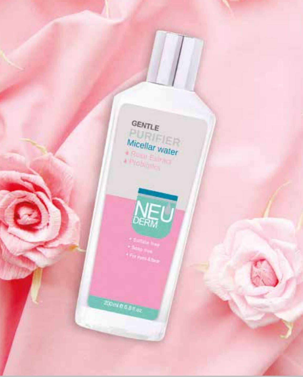 This Neuderm (Micellar Water) cleansing lotion is enriched with extracted rose water and probiotics, which play an important role in hydrating and relieving skin rashes and irritations and protect the skin against pollutants and inflammatory responses. The consumed probiotics stimulate the cellular immune system like vaccines and, while producing anti-inflammatory substances, they help to improve the skin condition by maintaining its healthy balance of acidity.